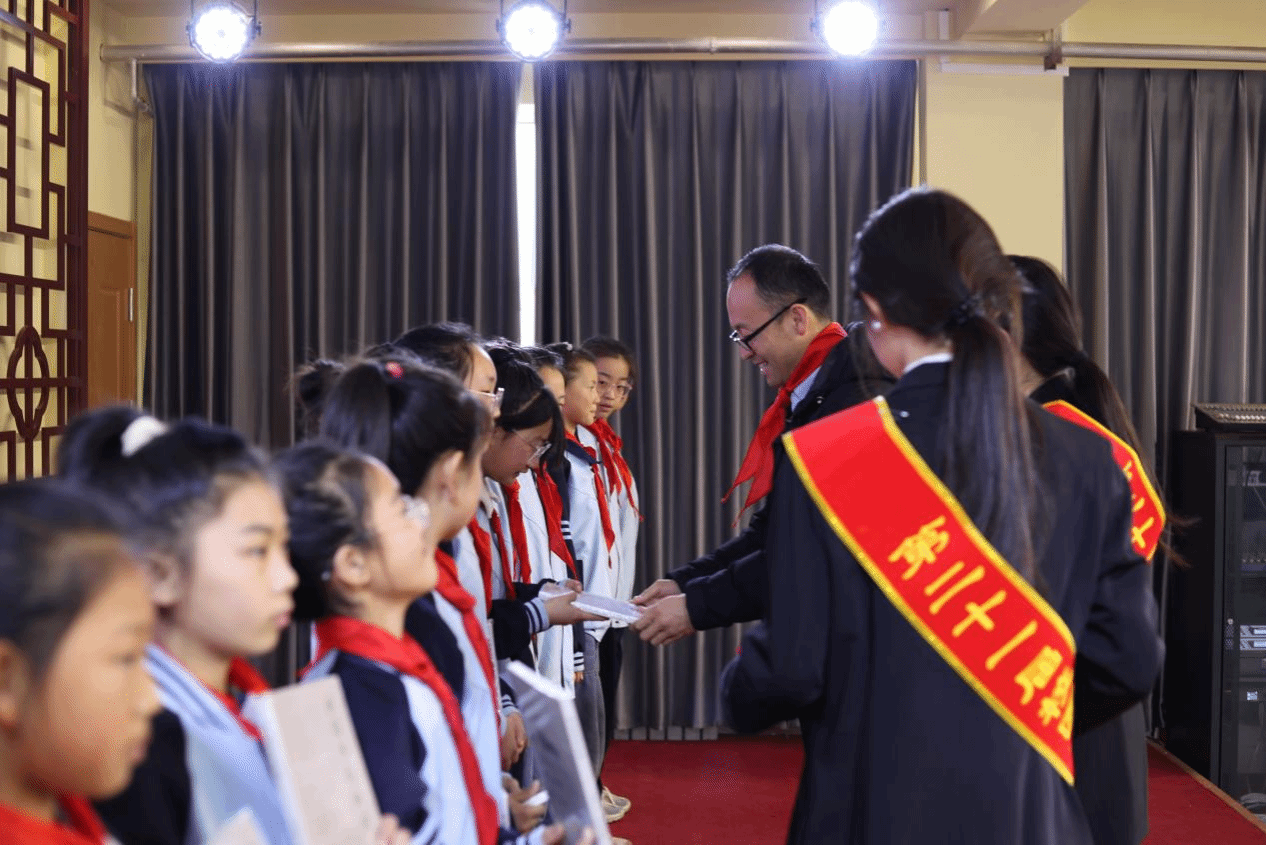 为充分发挥学校在学雷锋活动中的引领辐射作用,进一步推进大中小学思政一体化建设,学校第二十一届校园雷锋班将王滨希望学校确立为“学雷锋校外实践基地”,潘祎与周晓武共同为基地揭牌,王福刚向王滨希望学校员工代表赠书,小员工代表为与会领导和雷锋班员工代表佩戴红领巾。